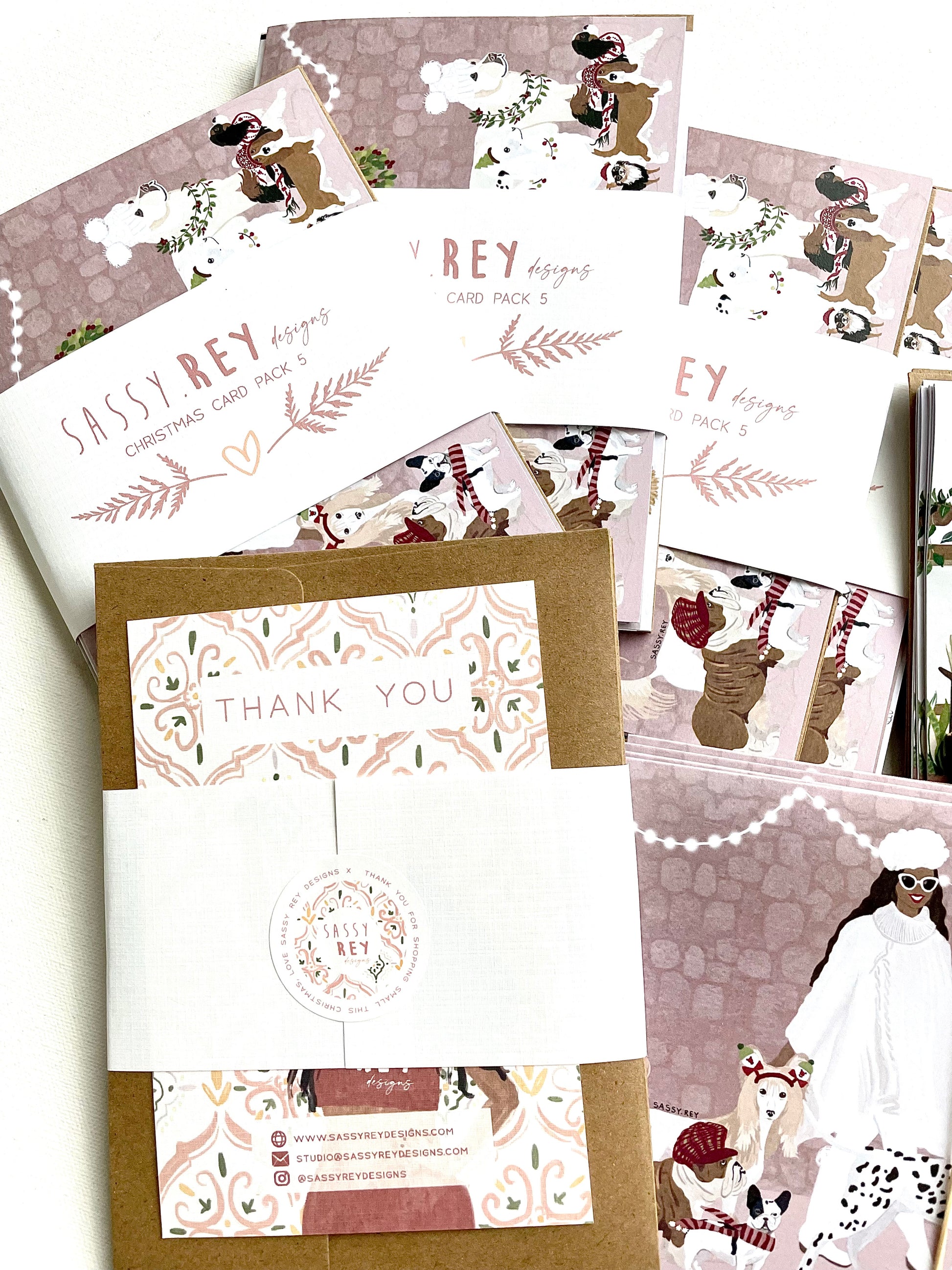 Grab yourself a huge bargain with this pack of 5 Christmas cards. Each card was lovingly illustrated by me depicting a different cozy Christmas scene, featuring cats and dogs in each image. Perfect for animal lovers and for those who like something a little different from the traditional christmas scene.